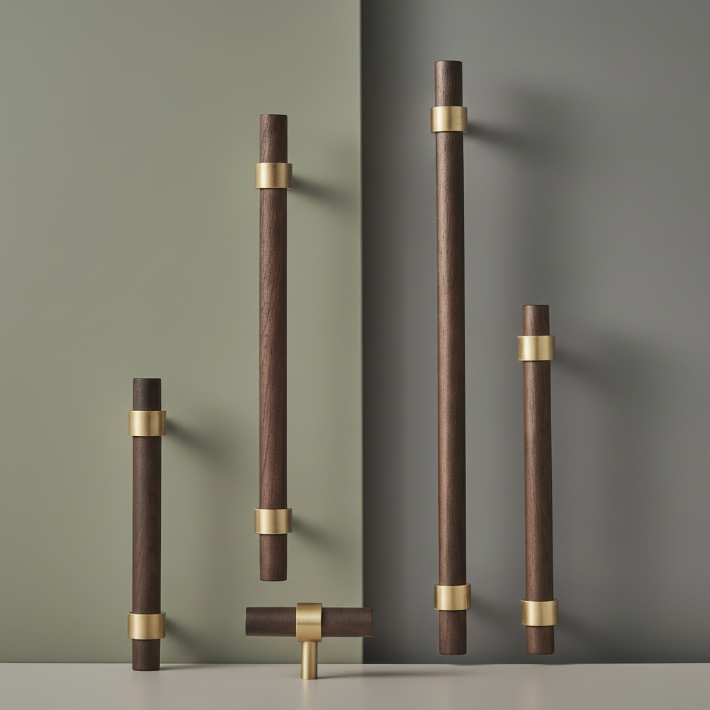 Dette håndtaket i valnøtt utstråler en varm og naturlig følelse i hjemmet ditt. Det klassiske designet med fester i solid messing gir et elegant preg til både kjøkken og møbler. Vi tilbyr også en matchende T-bar i samme serie.