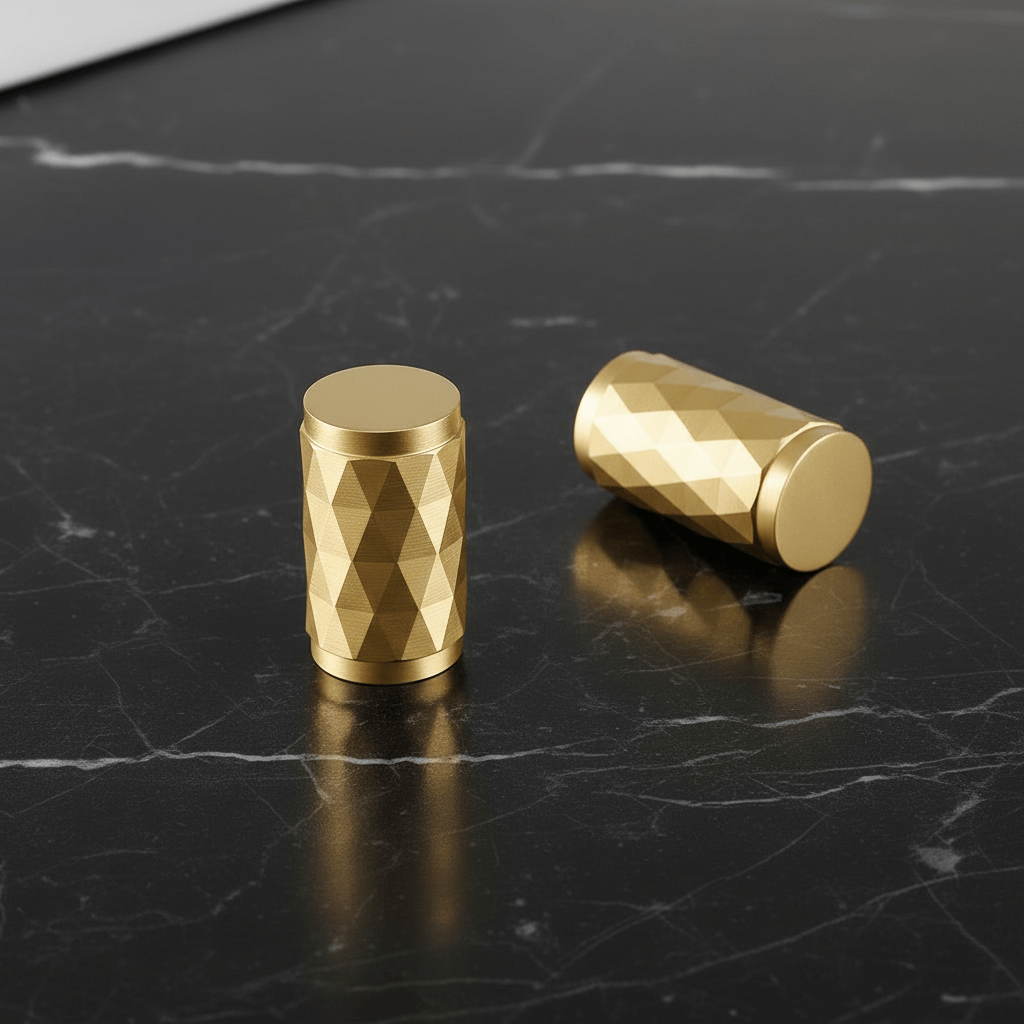 Knott i solid messing med en elegant diamantslipt form, perfekt som en individuell detalj på møbler eller sammen med andre håndtak på kjøkkendører og skap. Finnes i tre stilfulle utførelser for å passe ulike interiørstiler og behov.